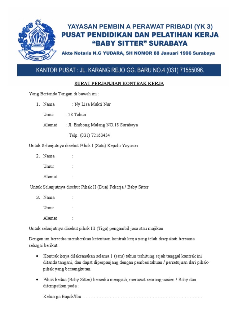 Surat Perjanjian Kerja Lpk Abadi Sejahtera